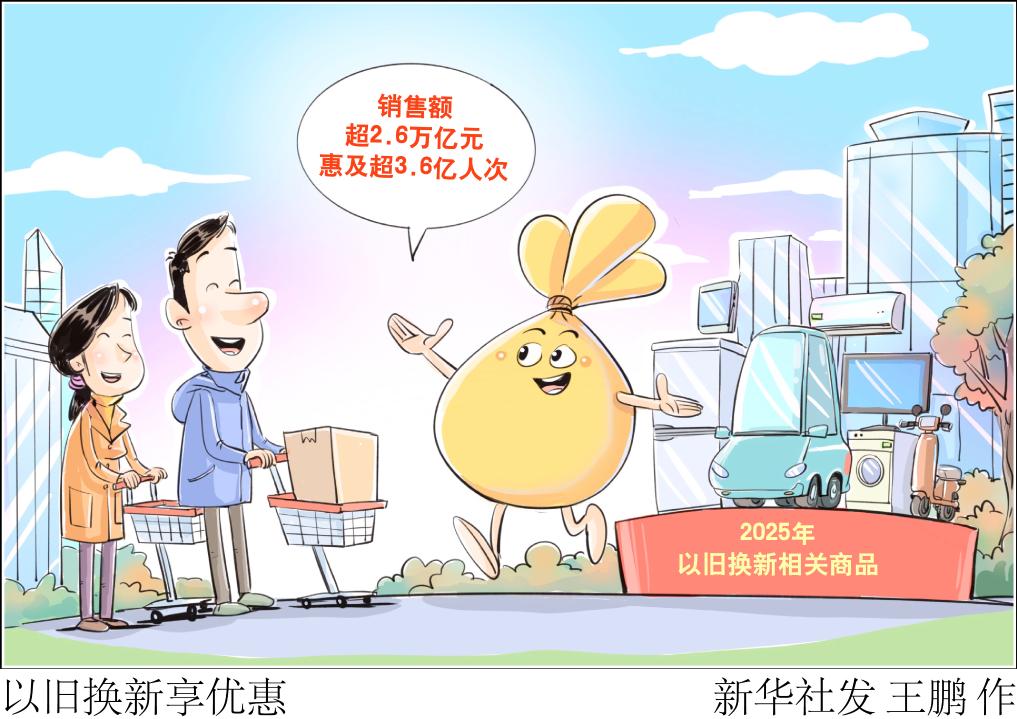 记者1月1日从商务部获悉,2025年,以旧换新相关商品销售额超2.6万亿元,惠及超3.6亿人次。