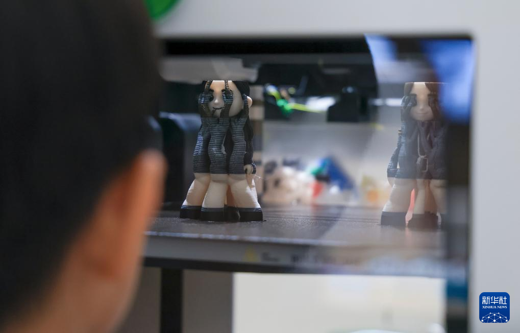 1月18日,顾客在深圳市南山区的INNO100全球创新旗舰店“万物定制工作站”参观3D打印机工作。“万物定制工作站”拥有3D打印机等各类DIY设备,可以进行产品的个性化定制。新华社记者 毛思倩 摄