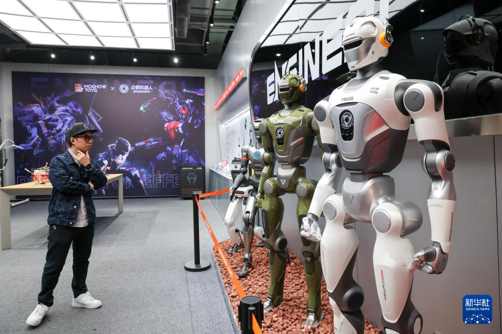 1月15日,人们在位于深圳市福田区的众擎机器人门店内了解机器人等产品。新华社记者 梁旭 摄