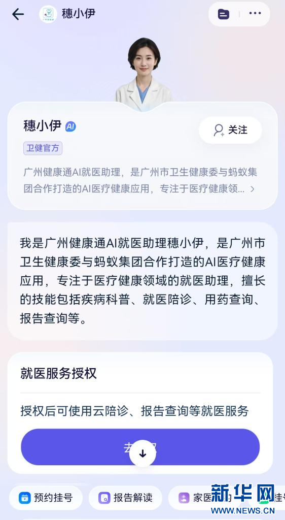 “穗小伊”是由广州市卫生健康委员会联合蚂蚁集团打造的AI就医助理,此前已在支付宝app平台实现,可24小时响应居民健康需求。市民也可通过“穗小伊”在线人工挂号,预约广州医科大学附属第一医院等300多家医院号源。
