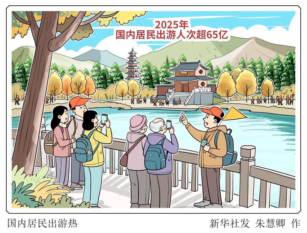 文化和旅游部1月26日发布2025年国内居民出游数据情况。根据国内居民出游抽样调查统计结果,2025年,国内居民出游人次65.22亿,比上年同期增加9.07亿,同比增长16.2%。国内居民出游花费6.30万亿元,比上年同期增加0.55万亿元,同比增长9.5%。新华社发 朱慧卿 作