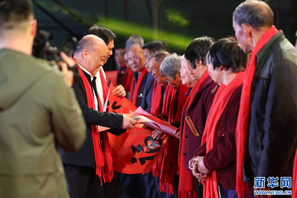 活动现场,锣鼓队与香火龙表演率先登场,客家特色歌舞节目接连上演。县文联、书法家协会代表现场挥毫泼墨,书写春联与“福”字赠送长者,30名儿童向老人献礼。商会代表向长者逐一慰问,并送上保暖围巾、新春礼包与慰问红包。