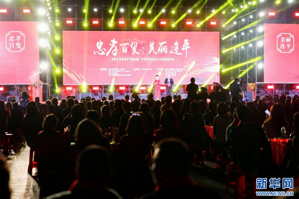新华网广州2月24日电(记者熊嘉艺)近日,“忠孝百叟·美丽连平”百叟村百叟宴乡村晚会在广东省连平县隆街镇百叟村举行。活动为百位长者送上新春温暖,不仅以敬老孝亲温暖乡土,也是当地推进“百县千镇万村高质量发展工程”的生动实践。
