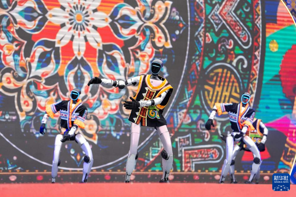 今年的巡游队伍中,还有一群特别的“演员”——身着绚丽民族特色服饰的机器人,伴着民族音乐灵活舞动,与街舞舞者同台“斗艳”,引得人们纷纷举起手机拍摄,喝彩声与掌声此起彼伏。